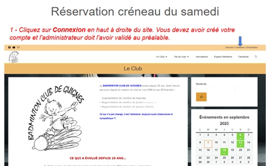 Les Tutoriels : Tuto N°1 - Réservation créneau du samedi Voici la procédure pour réserver un créneau de jeu libre le samedi. Avant de pouvoir réserver, vous devez d’abord créer votre compte et attendre qu’il soit validé par un administrateur.